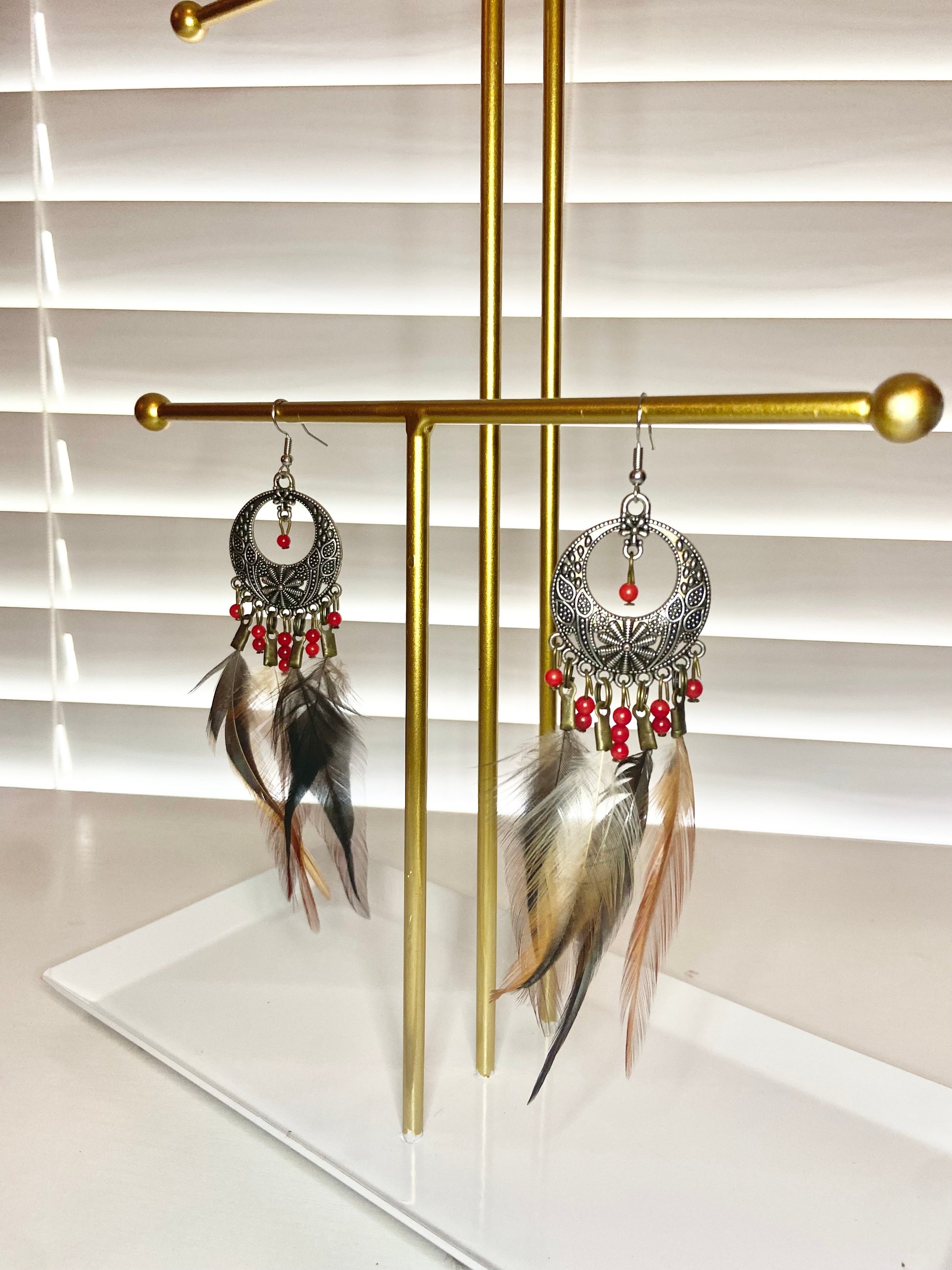 Pheasant and Coral Boho Earrings